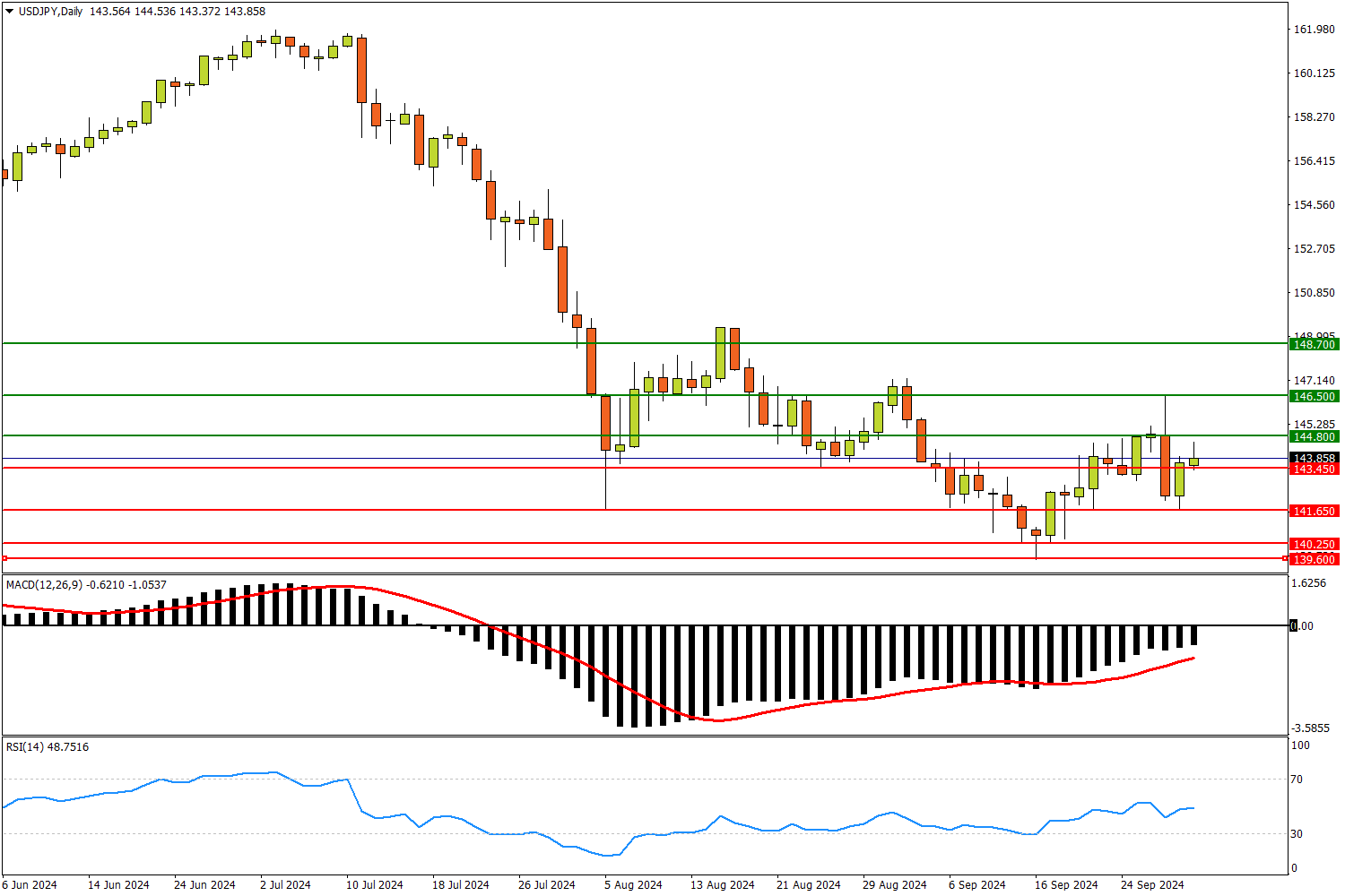 首先是8月下旬低点143.45仍有一定承接作用;但若跌破,下行先指向8月及9月6日低点141.70,该位是本月低位区上方的唯一屏障。