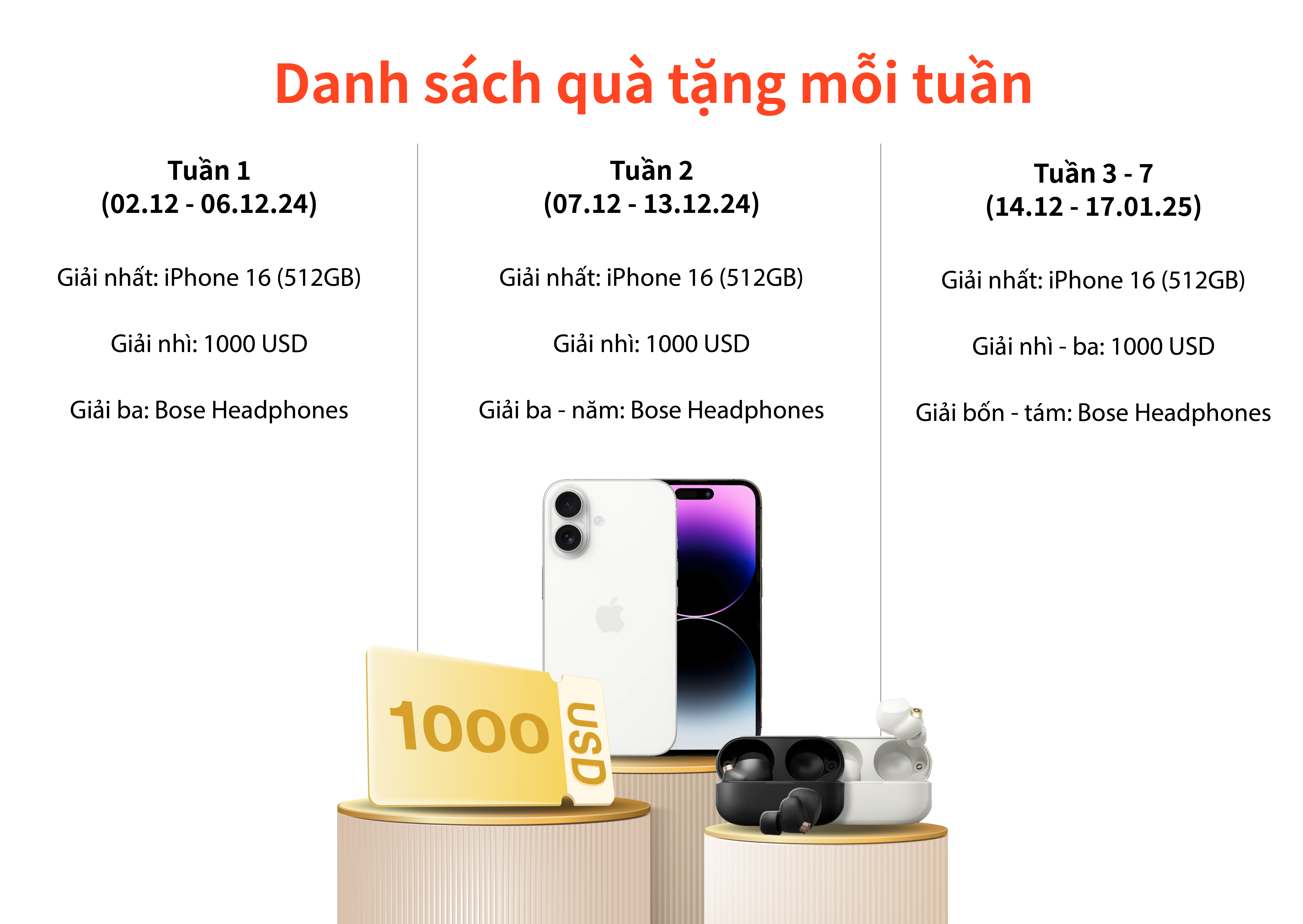 iPhone 16, $1000 USD và nhiều phần quà khác